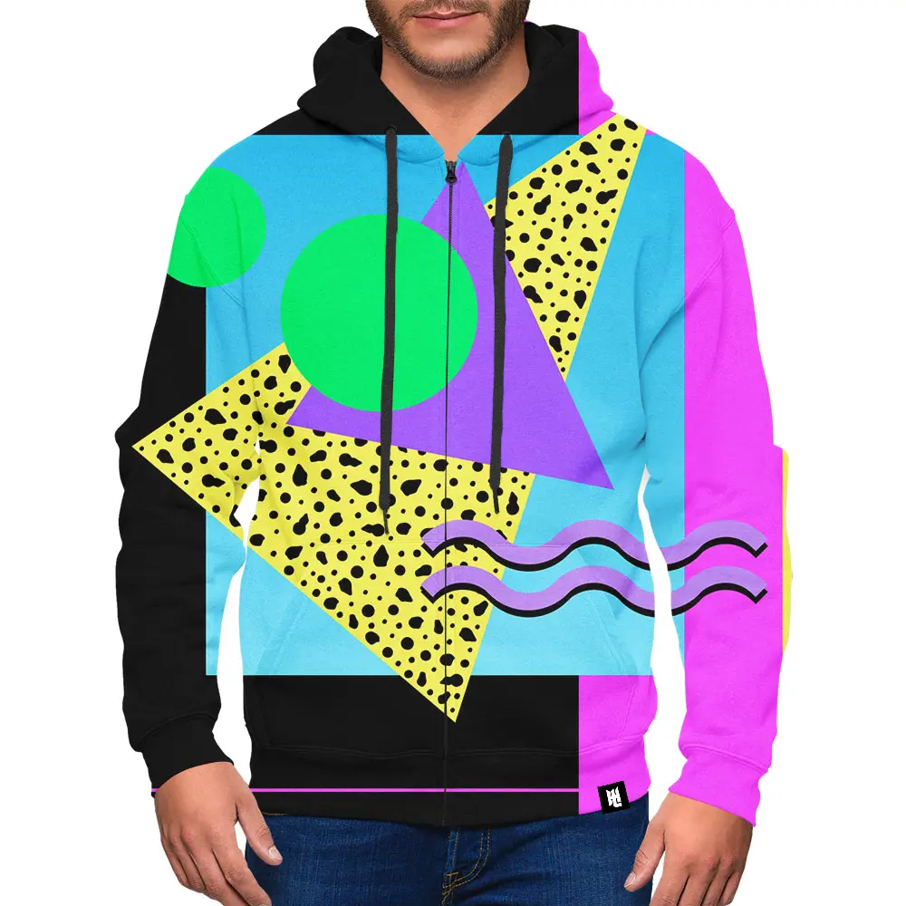 Memphis Retro Pattern 14 Zip-Up Hoodie